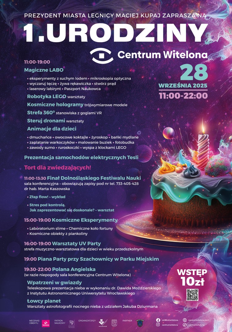 Pierwsze urodziny Centrum Witelona to świetna okazja do zabawy i nauki. Dzięki szerokiej ofercie każdy znajdzie coś dla siebie – od rodzin z dziećmi, przez młodzież zainteresowaną nowymi technologiami, aż po dorosłych pasjonatów nauki i astronomii.